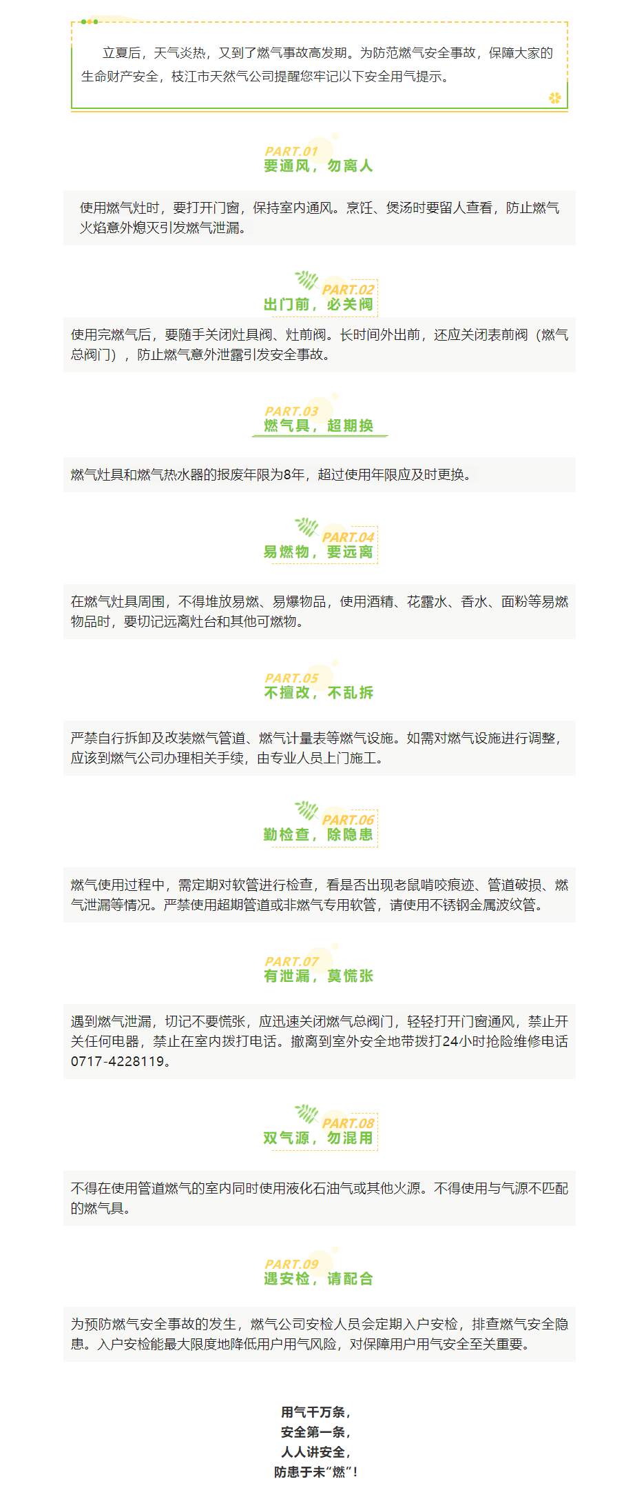 夏季安全用气,牢记燃气安全九提示!