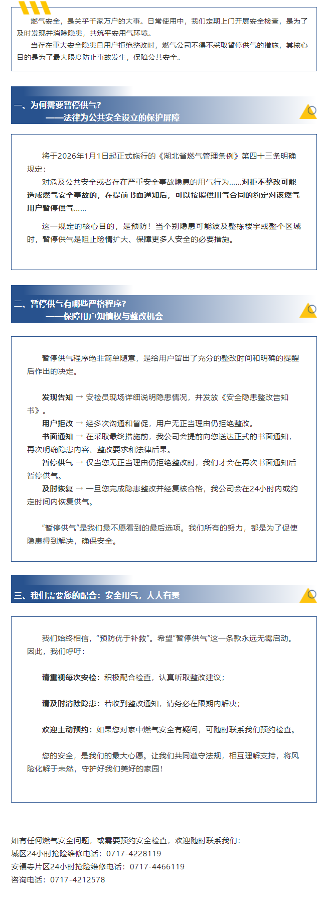 @所有用户:拒不整改安全隐患,会被暂停供气!